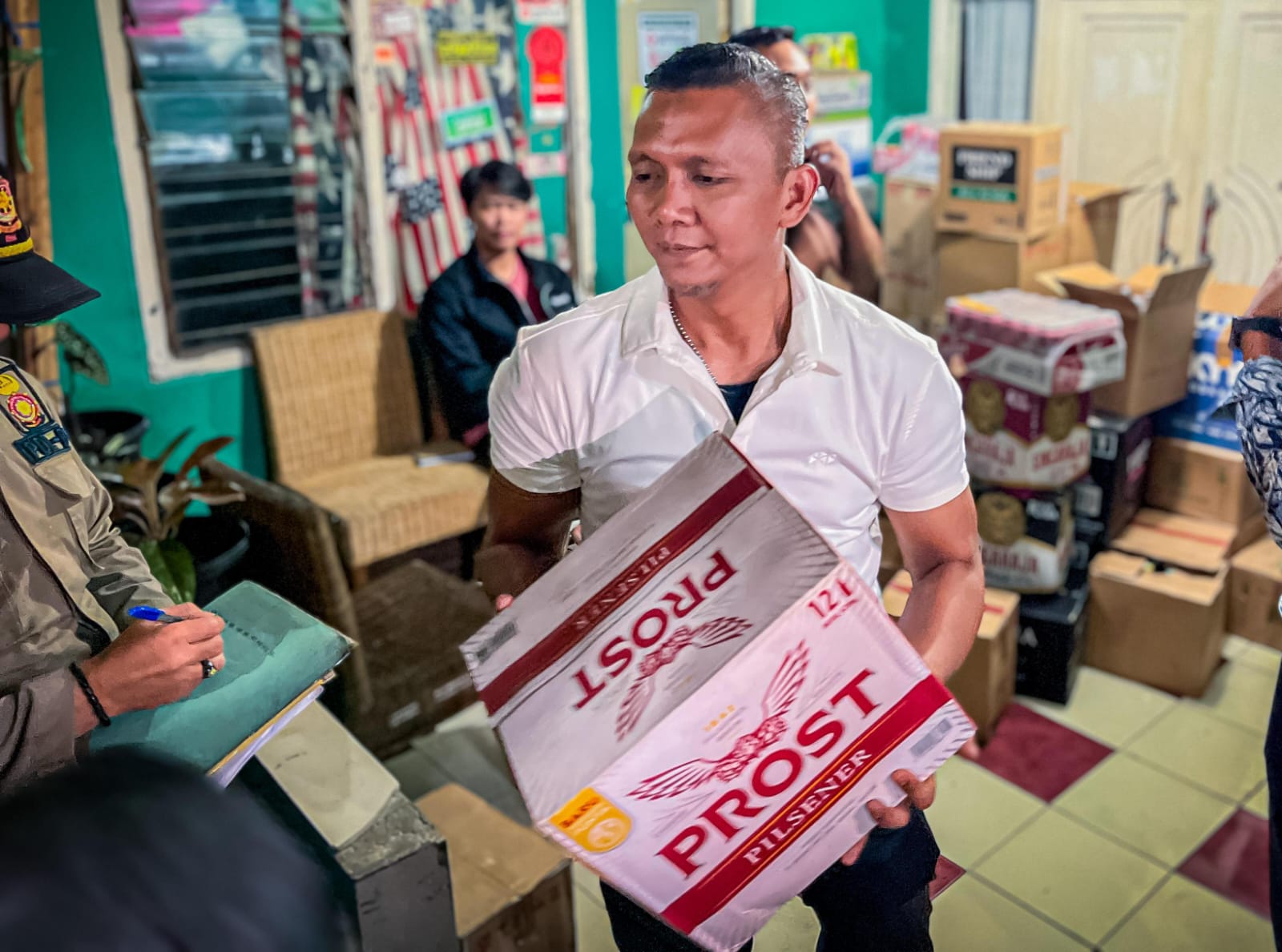 “Detik itu juga (setelah aduan masyarakat diterima), saya bersama Satpol PP dan camat langsung ke lokasi. Dan benar, ditemukan 1.787 botol miras dari 43 jenis merek lokal dan impor,” ungkap Jenal Mutaqin.